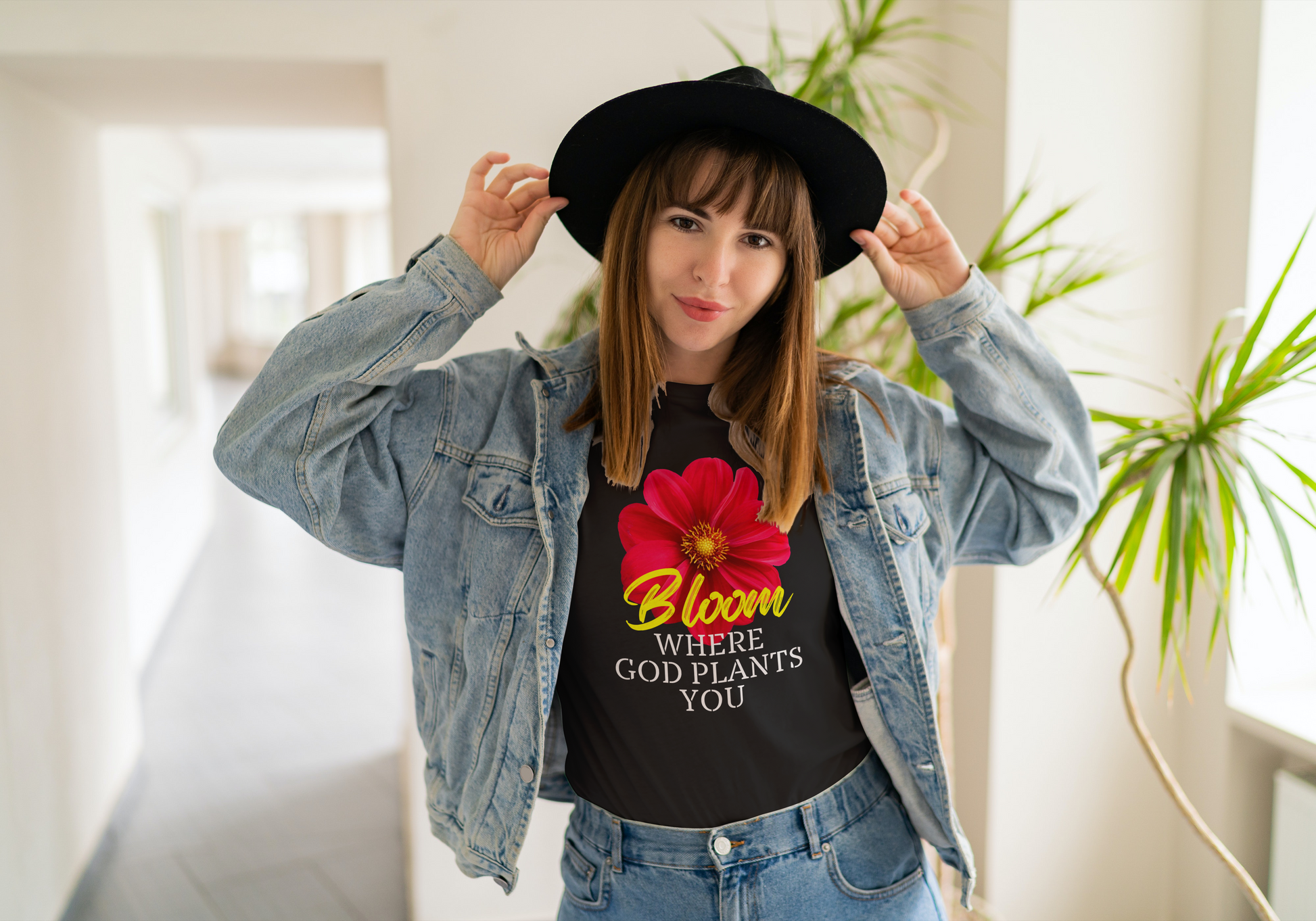 Elevate your spirit and style with our "Bloom Where God Plants You" Inspirational T-Shirt. This tee is not just clothing; it's a powerful reminder that, no matter where life takes you, you have the ability to thrive.