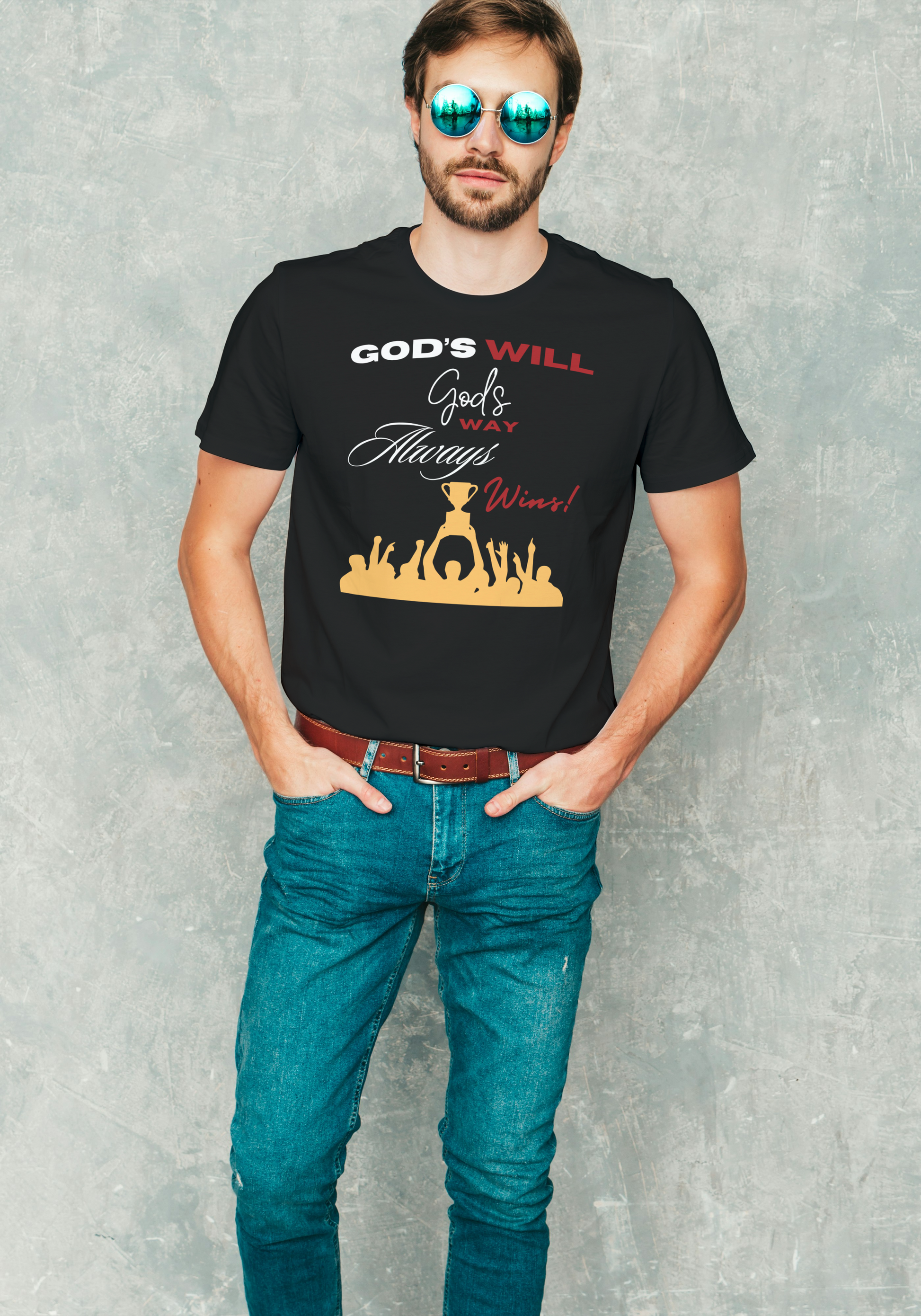 "God's Will, God's way Always Wins!" unisex t-shirt - Wear this powerful tee to speak boldly to your life and to those around you of the ultimate triumph which comes from God's divine guidance. Embrace the strength, peace and power that comes from knowing following His ultimate plan assures us the VICTORY!
